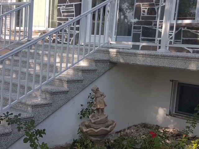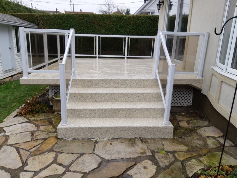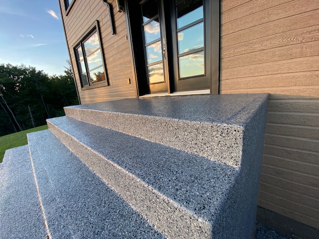 Le revêtement époxy ou ployaspartique est également conçu pour l’ extérieur : balcon et marche, escalier, patio, porche, terrasse, allée ou tout autre espace en béton.