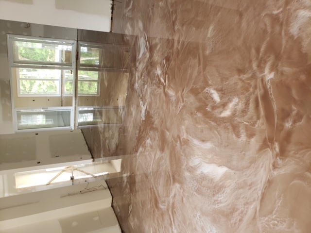 Les revêtements de plancher époxy en (marbre) métallique sont vraiment uniques pour vos sols intérieurs comme le sous sol, cuisine, salon et chambre!